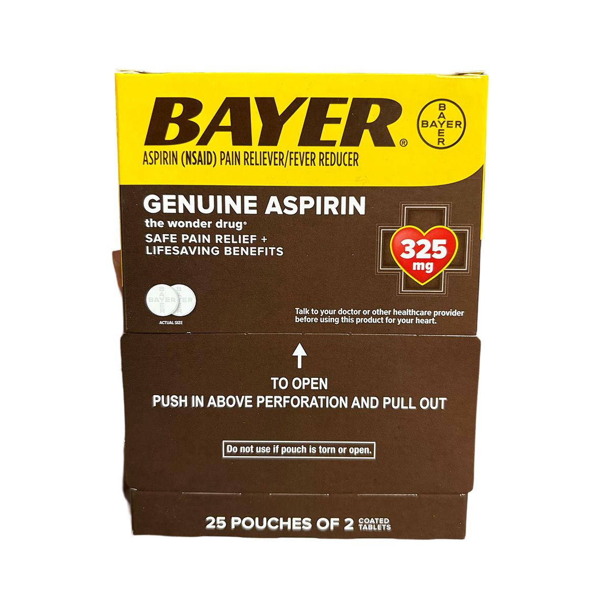 Bayer Genuine Aspirin 25 pounches Dispenser cantidad